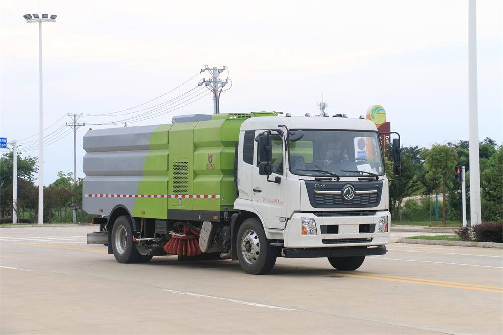 洗掃潔凈度高,該車型齊全的功能解決不同路面環境的作業,一次作業洗掃效率達98%以上,前沖功能、洗掃功能、路沿清洗功能、后噴霧功能、低壓沖洗功能以及采用的吸盤+左右側噴桿結構,路面、溝縫、彎道處、路沿上等處的灰塵、垃圾均能處理干凈,確保環境干凈、整潔。