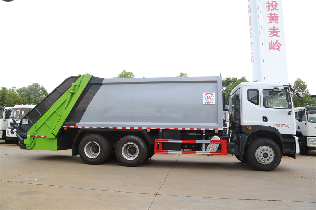 上裝配置:垃圾箱容積:18,20方選擇,新款平面弧形廂體,廂體材料為武鋼優質碳鋼,PLC一鍵操作**,手電一體操作模式,兩側雙電控,帶駕駛室內操作,底板支撐加強,雙向壓縮,開放式易清潔污水箱。壓縮式垃圾車采用機電液一體化技術,借助機、電、液聯合自動**系統、電腦**、手動操作系統,通過填裝器和推鏟等專用裝置,實現垃圾倒入、壓碎或壓扁、強力裝填,把垃圾擠入車廂并壓實和推卸,污水全部進入污水廂,解決了垃圾運輸過程中的二次污染的問題。壓縮式垃圾車具有自動反復壓縮以及蠕動壓縮功能,壓縮比高、密封性好、裝載量大﹑操作方便、環保性好﹑整車利用功率高等優點。作業自動化,垃圾收集方式簡便、高效。后翻轉機構選裝:1、掛塑料桶式翻轉機構;2、掛鐵桶式翻轉機構;3、擺臂式翻轉機構; 4、簸箕斗式翻轉機構。
