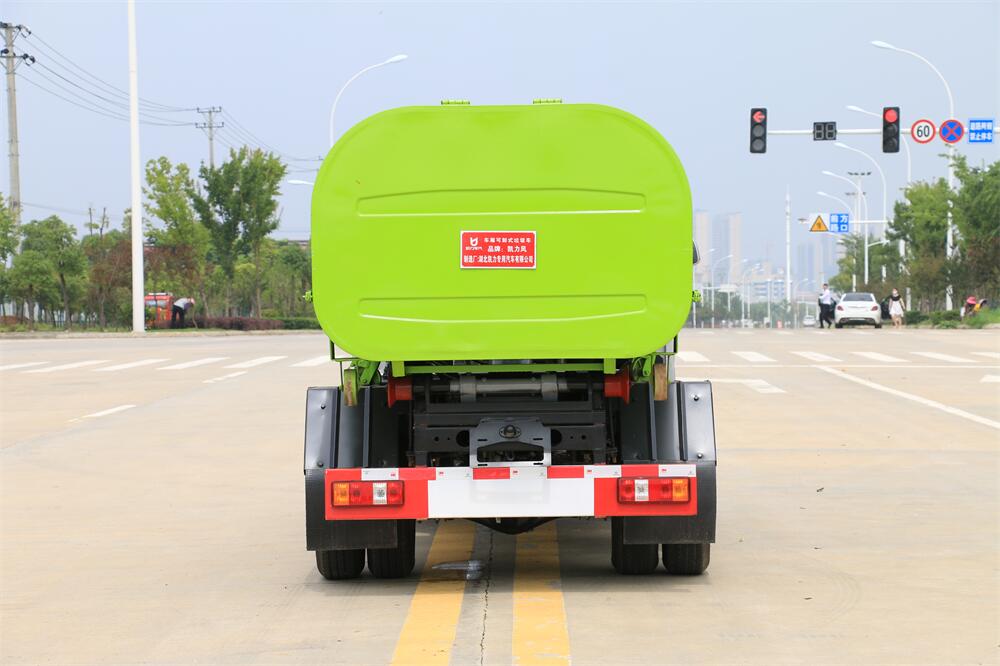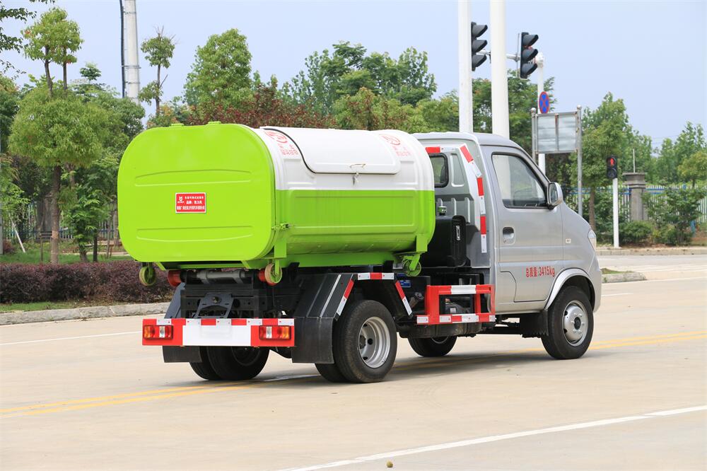 該款鉤臂式垃圾車由液壓系統、操作系統組成。舉升油制缸(1支)系國內知名液壓件廠家生產的雙作用油缸。垃圾廂可自吊上放下,可自行傾倒垃圾,上下一次工作循環時間≤50S。該車的特點是一個車能配多個垃圾廂,能實現一臺車與多個垃圾廂聯合作業,循環運輸,充分提高了車輛的運輸能力。