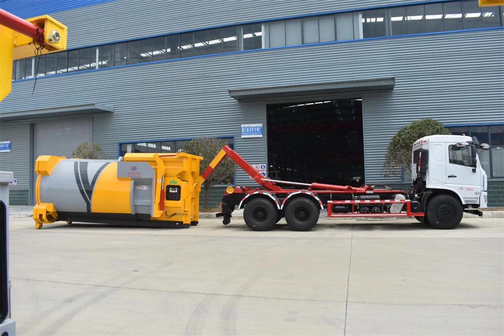 勾臂式垃圾車(車廂可卸式垃圾車)介紹: 車廂可卸式垃圾車又叫拉臂式垃圾車,是一種采用高新設(shè)計可伸縮的鉤臂,實現(xiàn)垃圾廂的二次吊裝,自吊上放下,可自行傾倒垃圾的環(huán)衛(wèi)設(shè)備。 拉臂式垃圾車結(jié)構(gòu)簡單,操作穩(wěn)定方便,裝卸效率高,機(jī)械化程度高,節(jié)省人力。鉤臂垃圾車一車可帶多個垃圾廂,在裝卸的運輸過程中可有效地避免二次污染。 拉臂垃圾車采用高新設(shè)計可擺動的鉤臂,垃圾箱由框架、開啟油缸、滑輪、后門和若干加強(qiáng)框架與鋼板焊接而成。調(diào)換貨廂快捷方便,貨廂上帶蓋(倒垃圾時可翻開),鉤臂垃圾車?yán)鴰w可選用碳鋼、不銹鋼材質(zhì)、內(nèi)部采取環(huán)氧樹脂防腐處理,改裝部分與原車底盤為可分離式,維修方便且保持了原車的機(jī)動性及行駛性能。