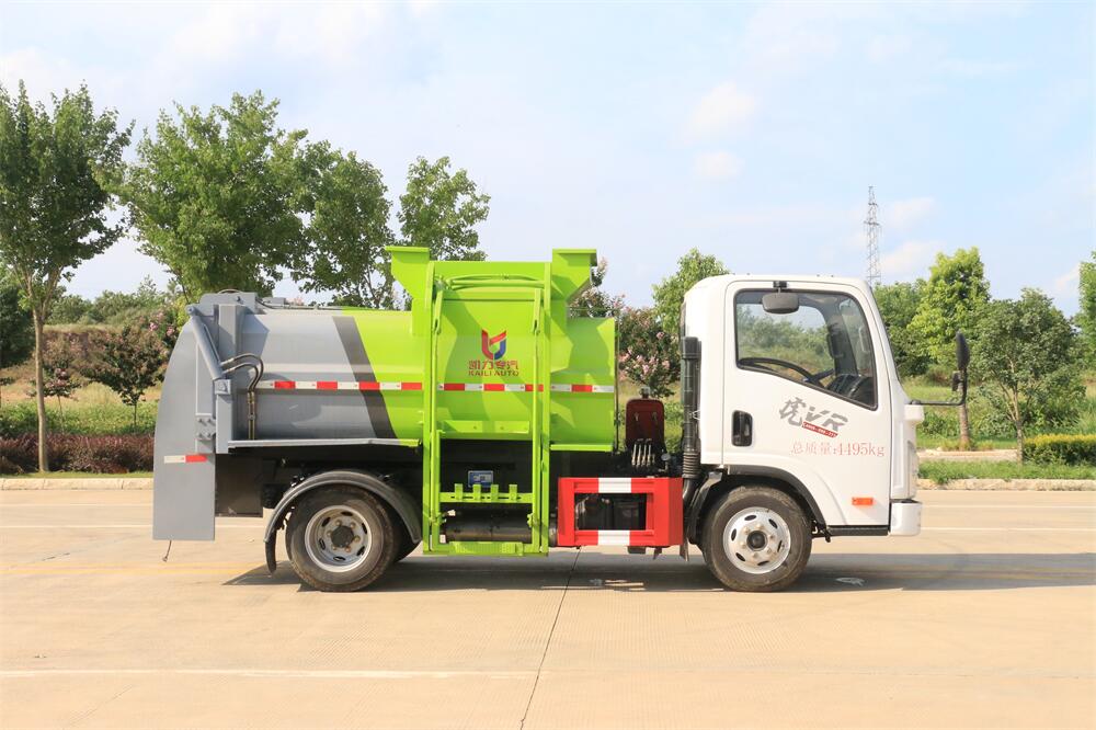 上裝配置:罐體容積6m3,配備120L/240L掛桶提升翻轉機構,液壓系統,后蓋液壓鎖緊開啟,罐體可以舉升自卸,尾部帶自流閥;用于運輸液態垃圾,其特點操作簡單,密封性好,無泄漏,無異味;可選裝固液分離功能,推板擠壓功能,常用于餐館的垃圾轉運處理。