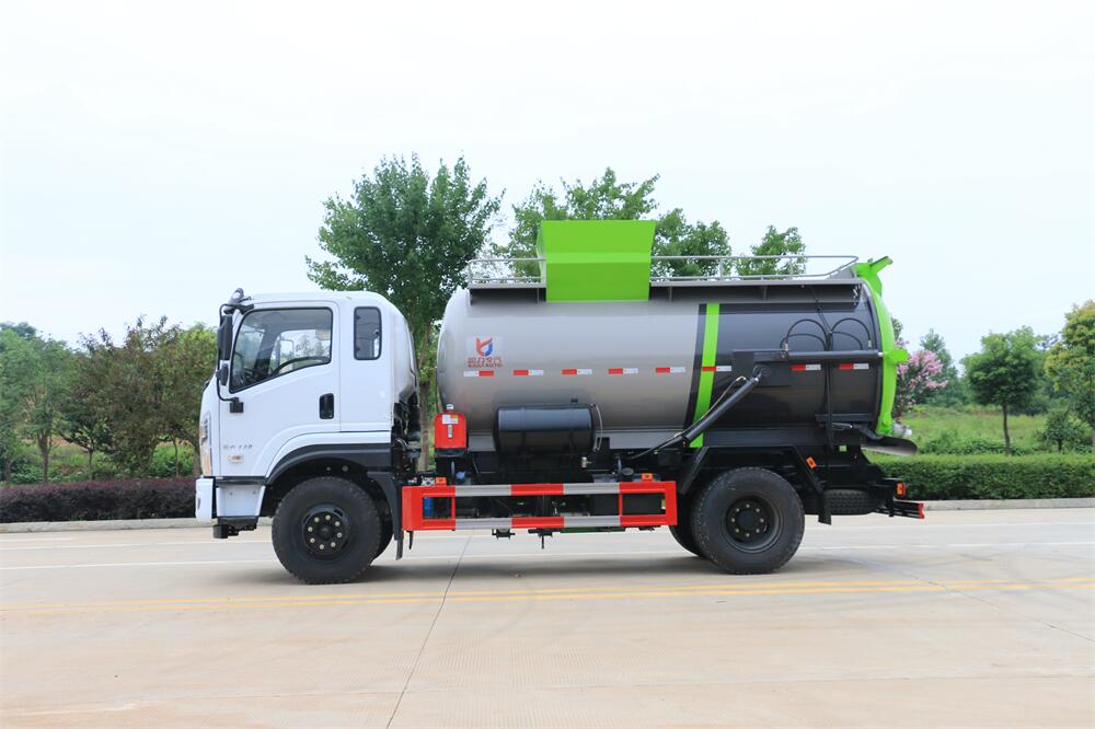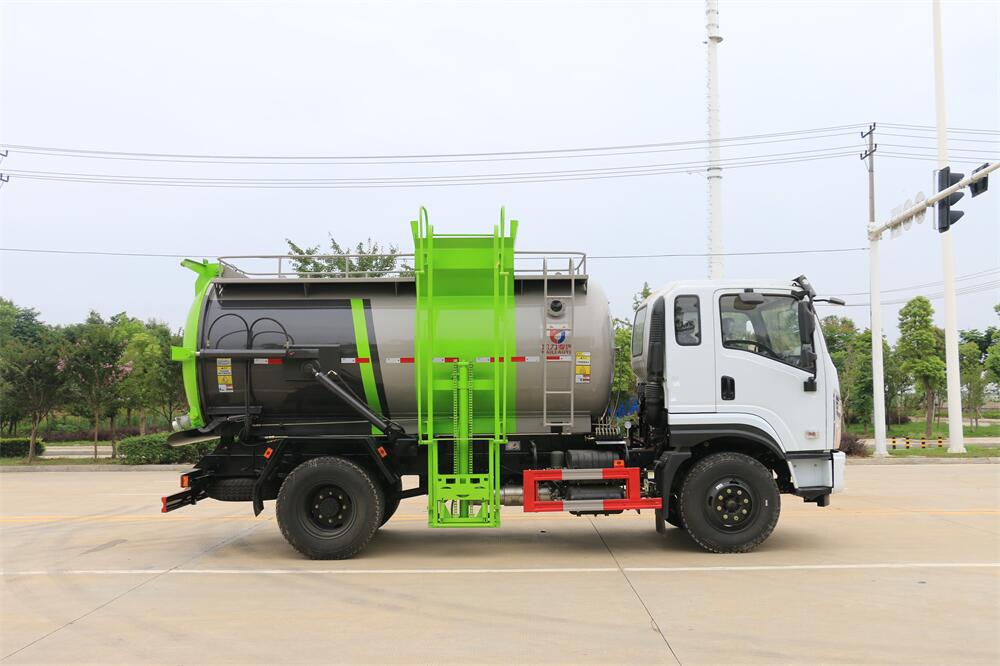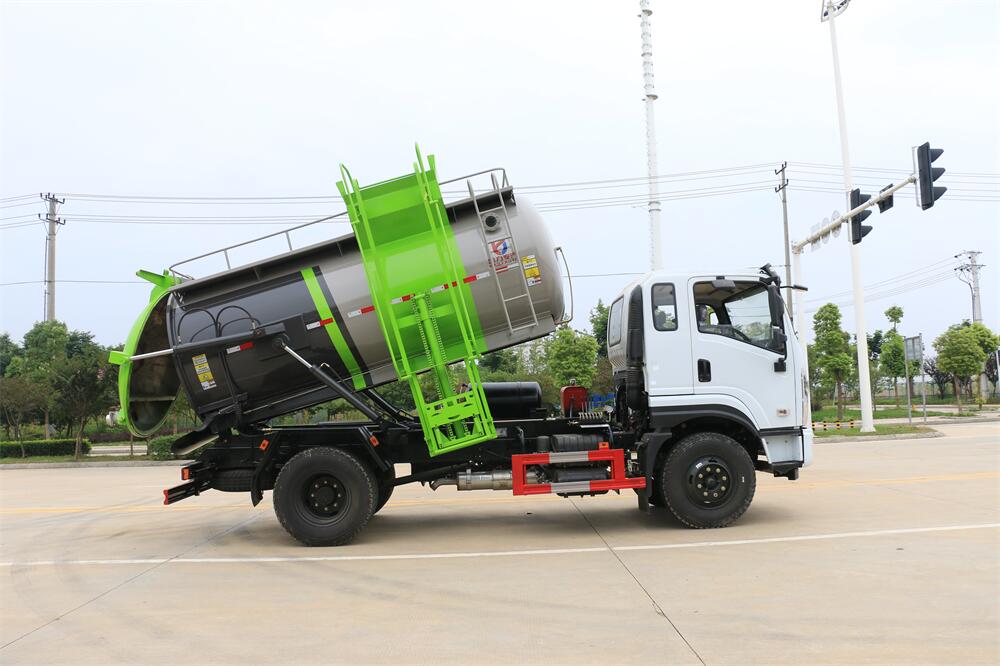 上裝配置:罐體容積10m3,配備120L/240L掛桶提升翻轉(zhuǎn)機構(gòu),液壓系統(tǒng),后蓋液壓鎖緊開啟,罐體可以舉升自卸,尾部帶自流閥;用于運輸液態(tài)垃圾,其特點操作簡單,密封性好,無泄漏,無異味;可選裝固液分離功能,推板擠壓功能,常用于餐館的垃圾轉(zhuǎn)運處理。
