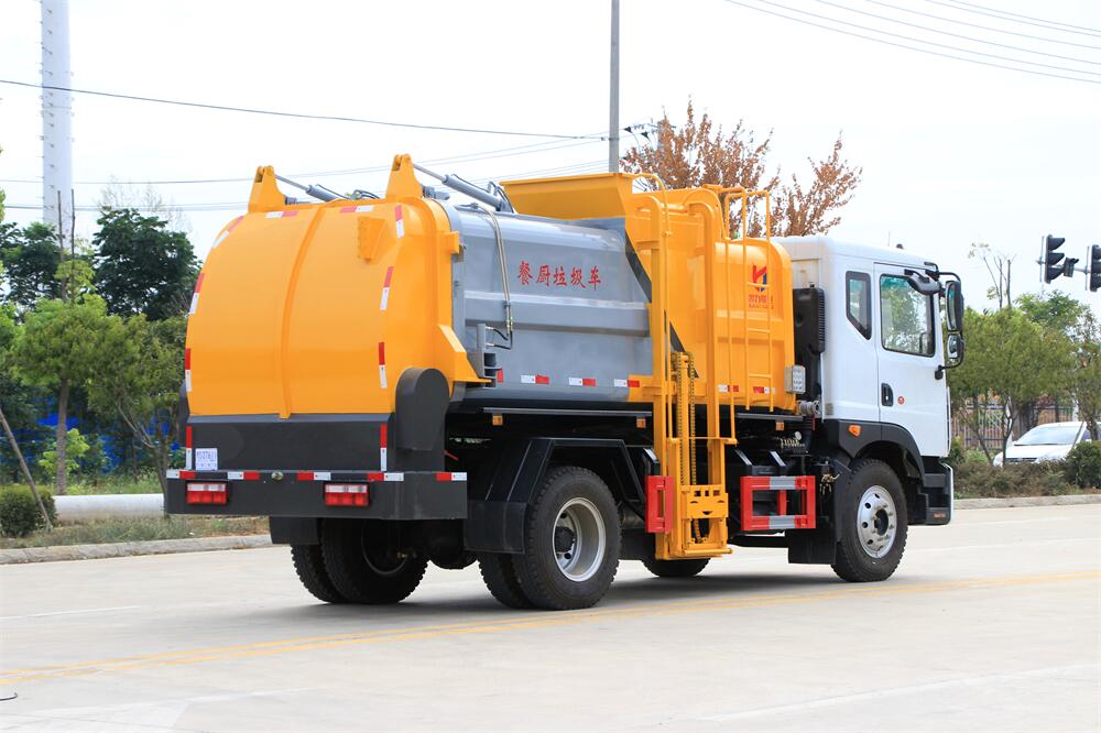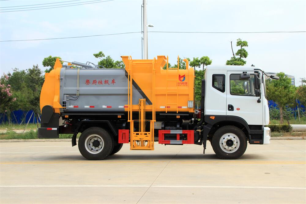 餐廚垃圾車或者餐余垃圾車、泔水車,是用于收集和運輸生活垃圾、食品垃圾(泔水)及城市淤泥的專用車輛。具有自裝、自卸、固液分離、壓縮垃圾自動化程度高、密封性好、操作簡便、無污水泄露和異味的散發等特點。