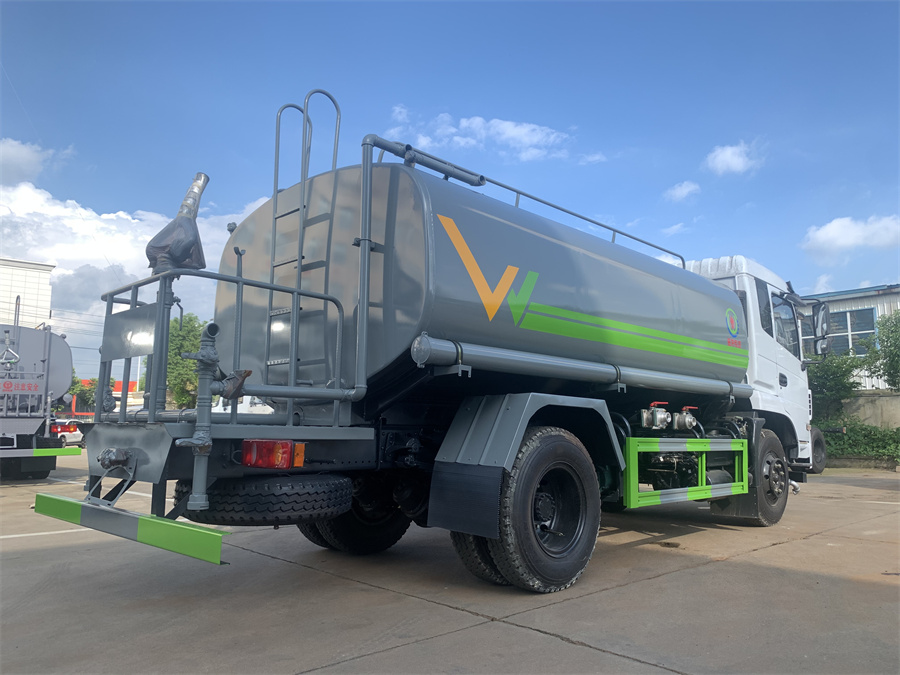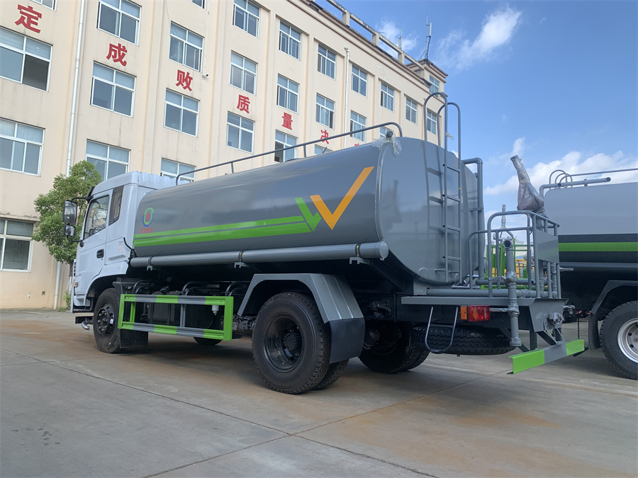 灑水車前裝有鴨形噴嘴或圓頭沖嘴,后面裝有圓柱開灑水噴嘴或蓮蓬頭噴嘴,后部有一工作平臺,裝配有水炮。后部還可裝8個噴嘴(選裝)。