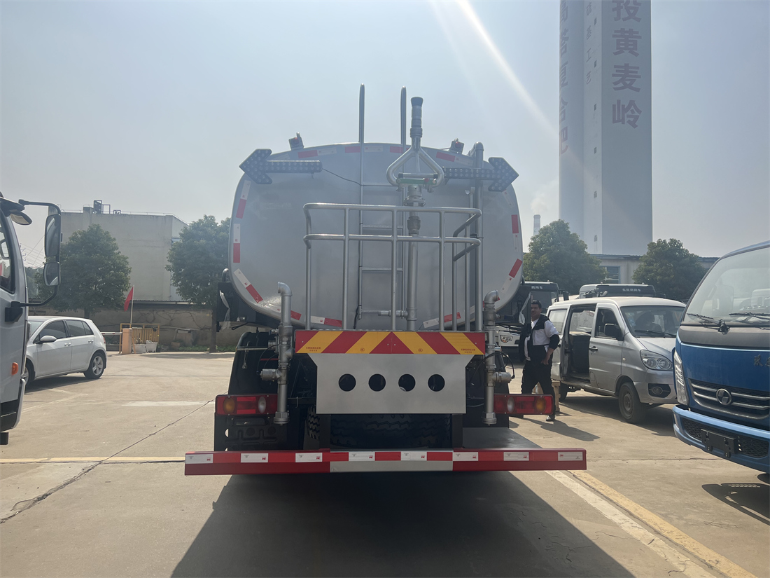 灑水車前裝有鴨形噴嘴或圓頭沖嘴,后面裝有圓柱開灑水噴嘴或蓮蓬頭噴嘴,后部有一工作平臺(tái),裝配有水炮。后部還可裝8個(gè)噴嘴(選裝)。
