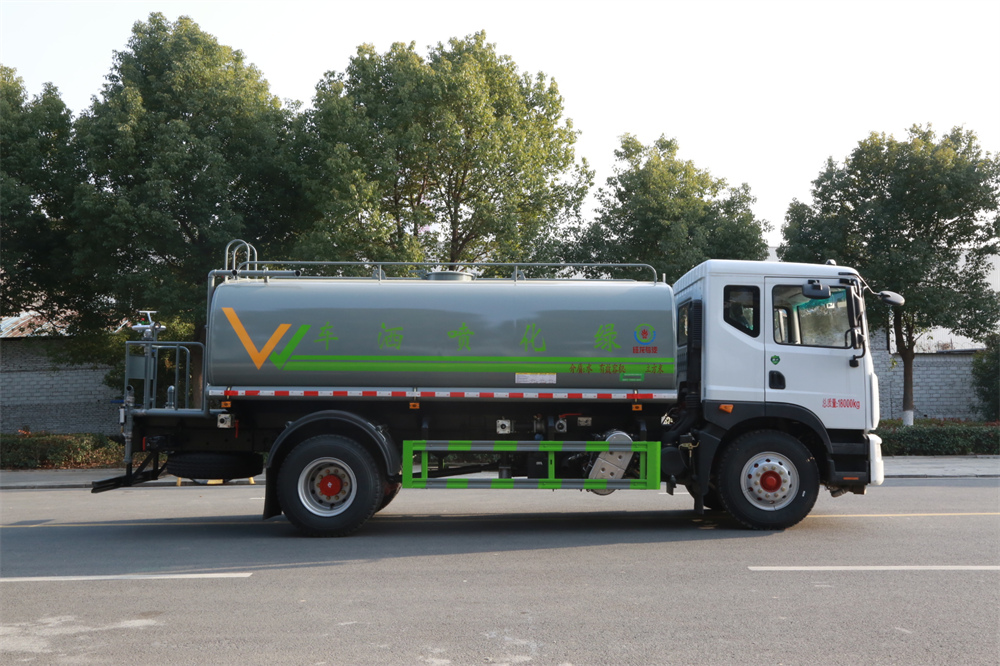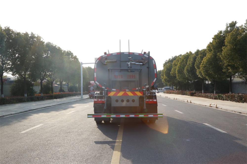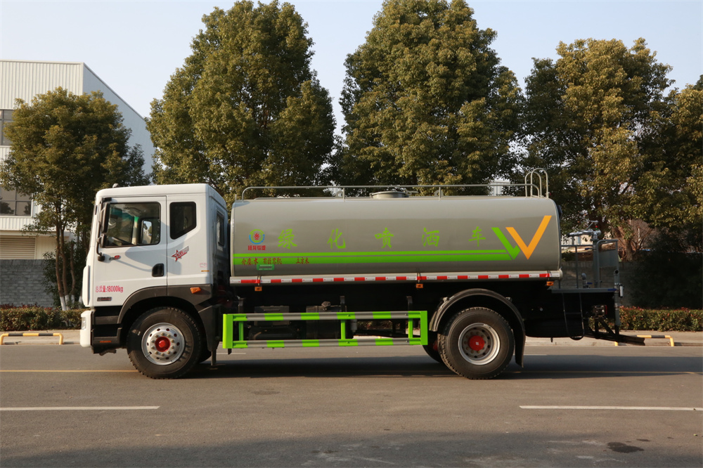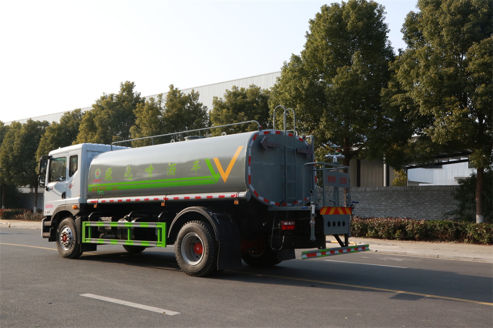 灑水車前裝有鴨形噴嘴或圓頭沖嘴,后面裝有圓柱開灑水噴嘴或蓮蓬頭噴嘴,后部有一工作平臺,裝配有水炮。后部還可裝8個噴嘴(選裝)。