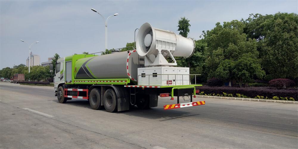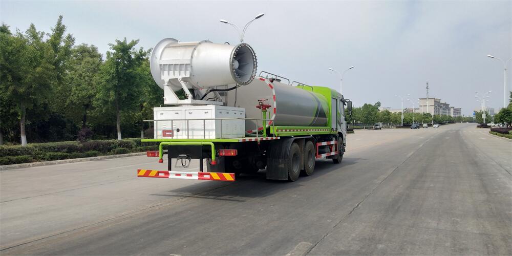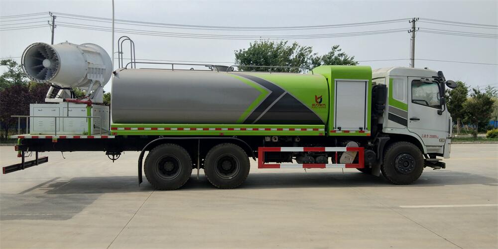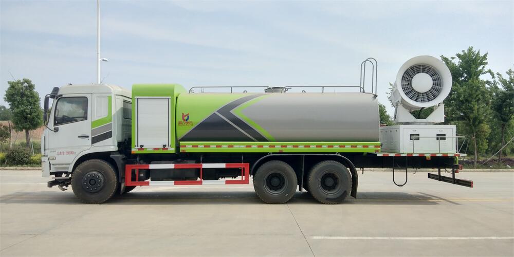 上裝配置:罐體容積為 16立方,選配風(fēng)送式霧炮機(jī)組射程30米、40米、50米、60米、80米、100米、120米霧炮,罐體鋼板為4mm碳鋼Q235材質(zhì),罐內(nèi)隔板具有防波作用,以減輕汽車行駛時(shí)罐體液體沖擊,罐體及整車外形尺寸按照公告。帶大功率專用灑水泵,泵可自吸自排,整車前沖、后灑、側(cè)噴、帶65消防接口,后平臺(tái)配CLW-50、CLW-60、CLW-80、CLW-100、CLW-120型風(fēng)送式霧炮機(jī)組;罐體前封頭配大功率柴油發(fā)電機(jī)組;前封頭帶水位計(jì),后平臺(tái)主管路帶1寸澆花接口,后爬梯。帶兩根輸水管及陰陽(yáng)端。罐體顏色:銀/灰/綠,罐體兩側(cè)噴“多功能抑塵車”字樣,貼反光標(biāo)示。