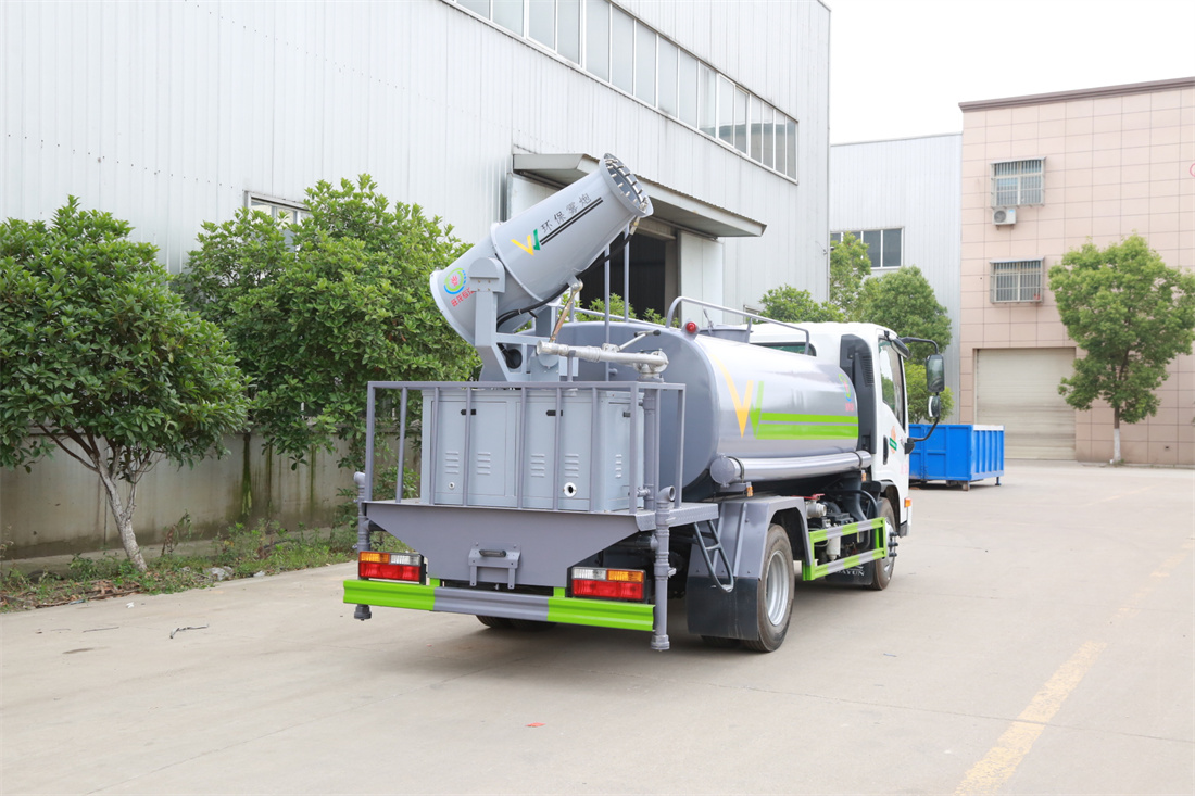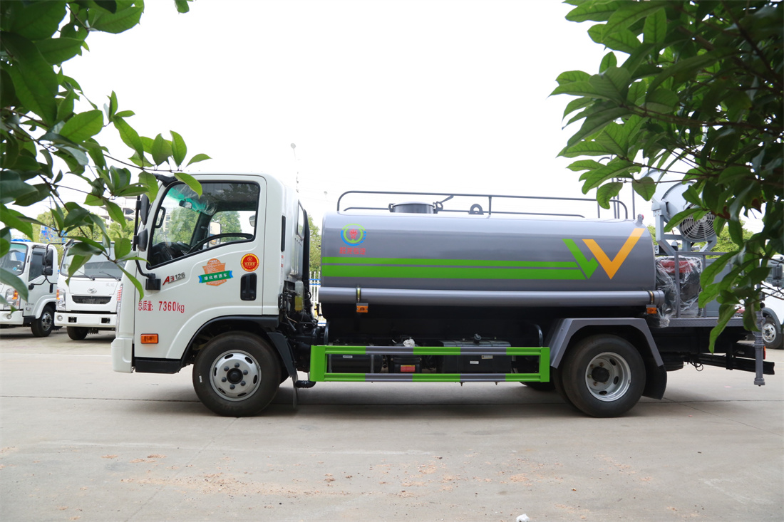 上裝配置:罐體容積 5立方,風送式霧炮機組30米,40米選擇,罐體采用國標Q235碳鋼材質,罐體厚度4MM,前后封頭5MM加厚型,罐體內雙層隔板具有防波蕩作用,以減輕汽車行駛時罐內液體沖擊;灑水車整車及外形尺寸嚴格按照**機動車公告制作而成;裝配大功率專用灑水泵,前沖、后灑、側噴、后平臺帶綠化灑水炮,灑水炮可全方位旋轉,可連續(xù)調成直沖狀、大雨、小雨、毛毛雨;配消防接口,自流閥,濾網(wǎng),帶自吸自排功能。前封頭帶水位計,后平臺主管路帶1寸澆花接口,后爬梯,帶1個消防接頭,帶1個自流閥,1個過濾裝置,其余標配。