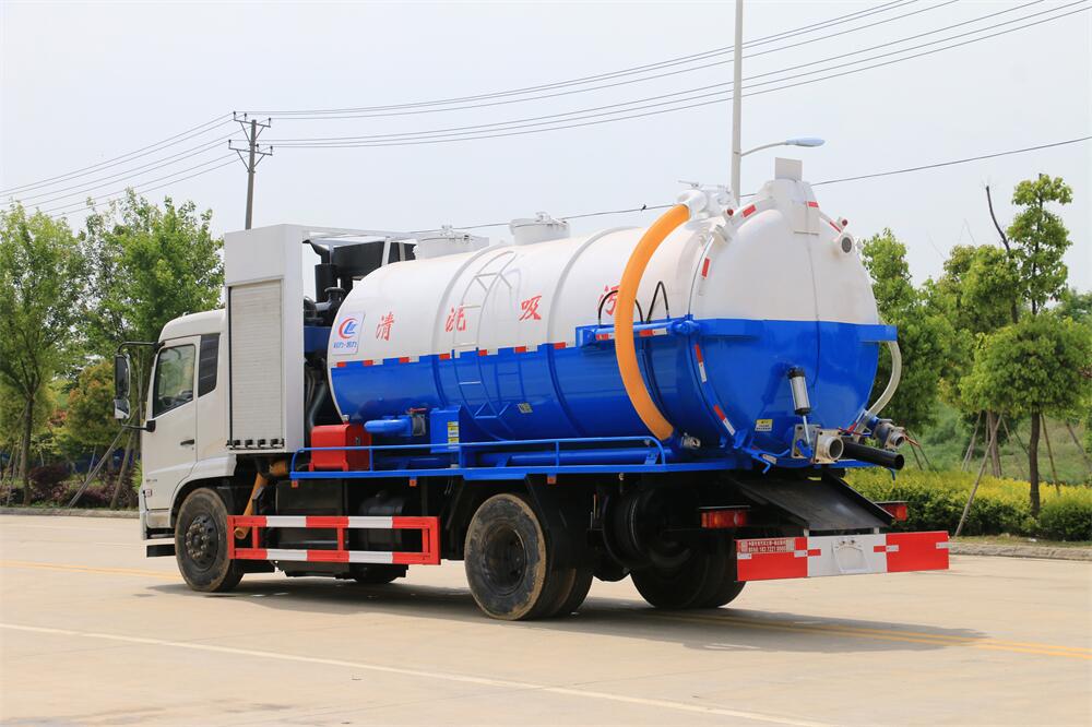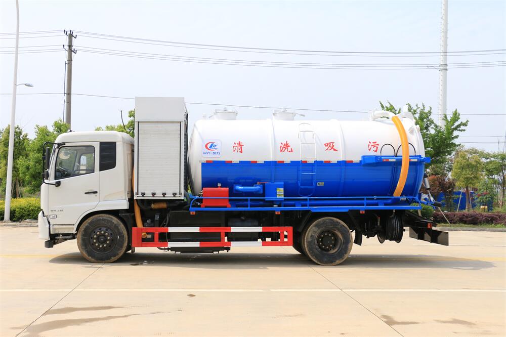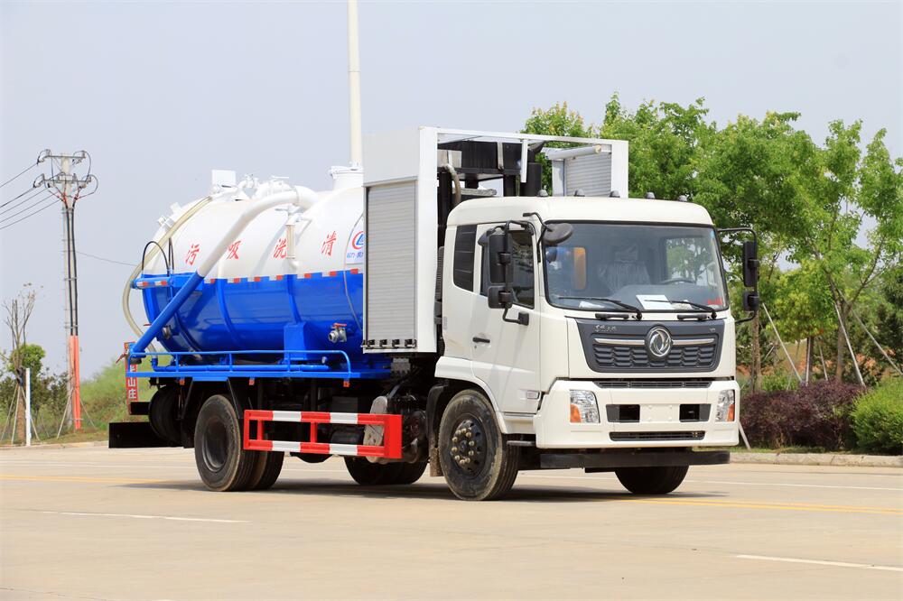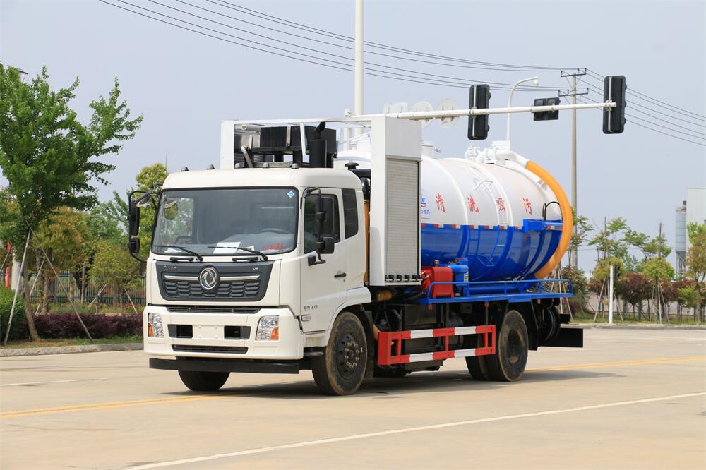 15方清洗吸污車-東風天錦15方10+5清洗吸污兩用車-帶副發動機 圓罐
