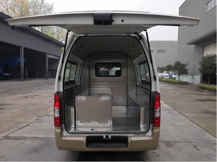 產(chǎn)品簡(jiǎn)介 1. 主要配置:前空調(diào),前暖風(fēng),電動(dòng)車(chē)窗,ABS+EBD, 遙控鑰匙2. 改裝部分采用304L不銹鋼制作,中間不銹鋼隔墻安裝拉窗,不銹鋼地板,不銹鋼常溫棺不銹鋼擔(dān)架,加兩側(cè)玻璃下不銹鋼裝飾 ,根據(jù)您的要求設(shè)計(jì)改裝方案,模板一次成型,隔墻密封,拒串味。可以廠家自提,也可以付定金貨到付款。(冰棺選裝,后空調(diào)選裝,可視系統(tǒng)選裝,對(duì)講系統(tǒng)選裝)